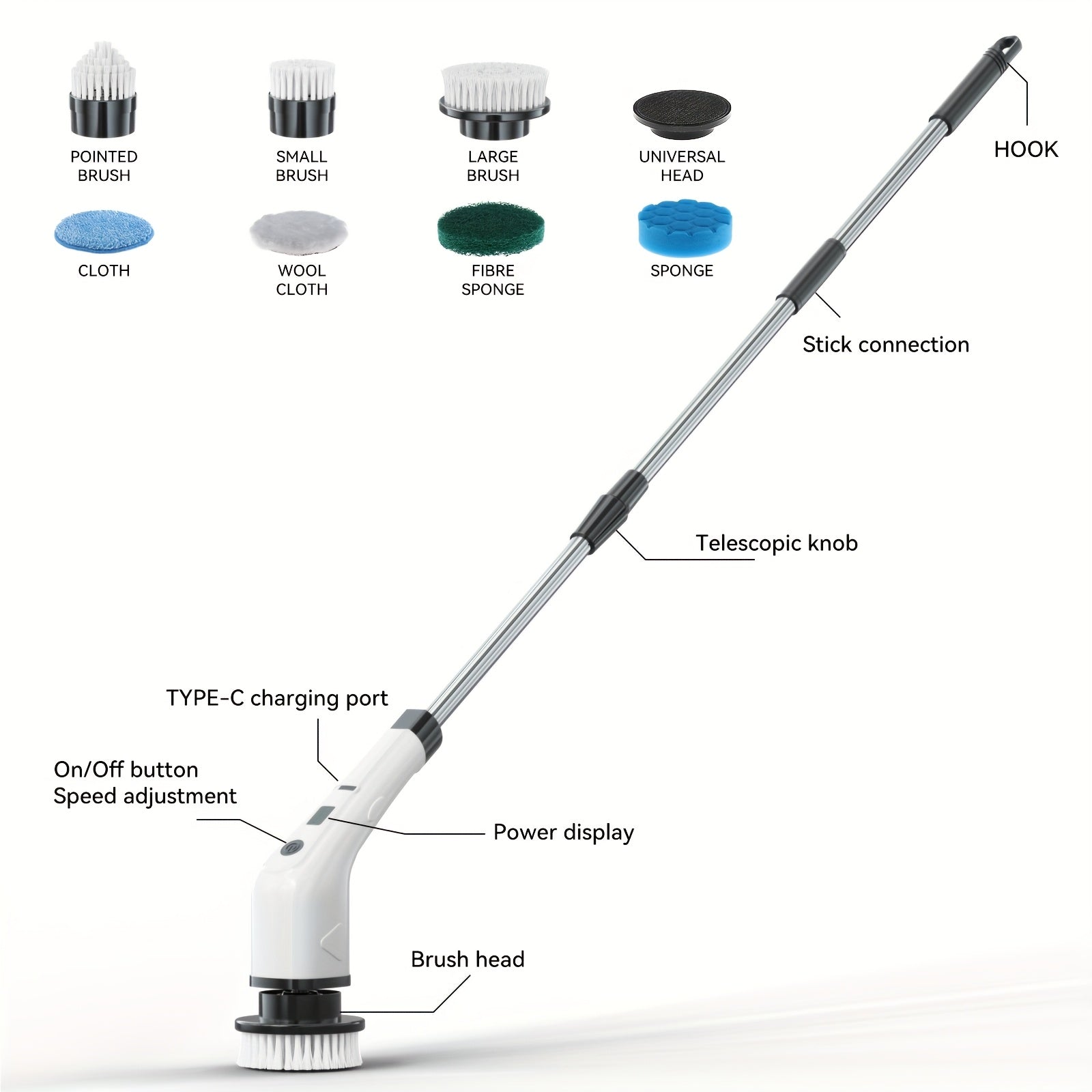 🧼 One tool. Every job. With a telescopic handle, waterproof motor, and 7 detachable heads, this scrubber crushes bathroom scum, kitchen gunk, tile stains — you name it. From floor to ceiling, this cordless beast handles it all. No bending, no elbow grease, just spotless power.