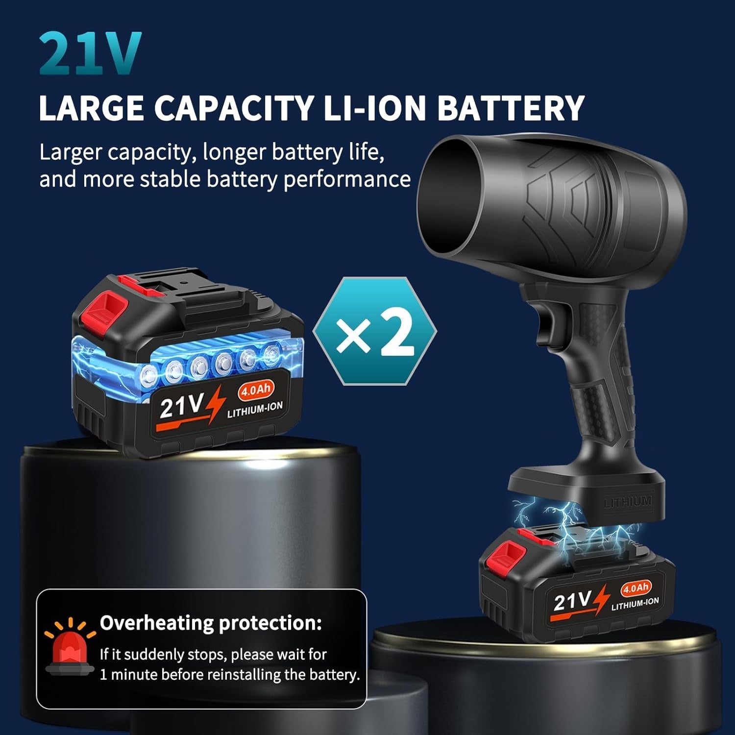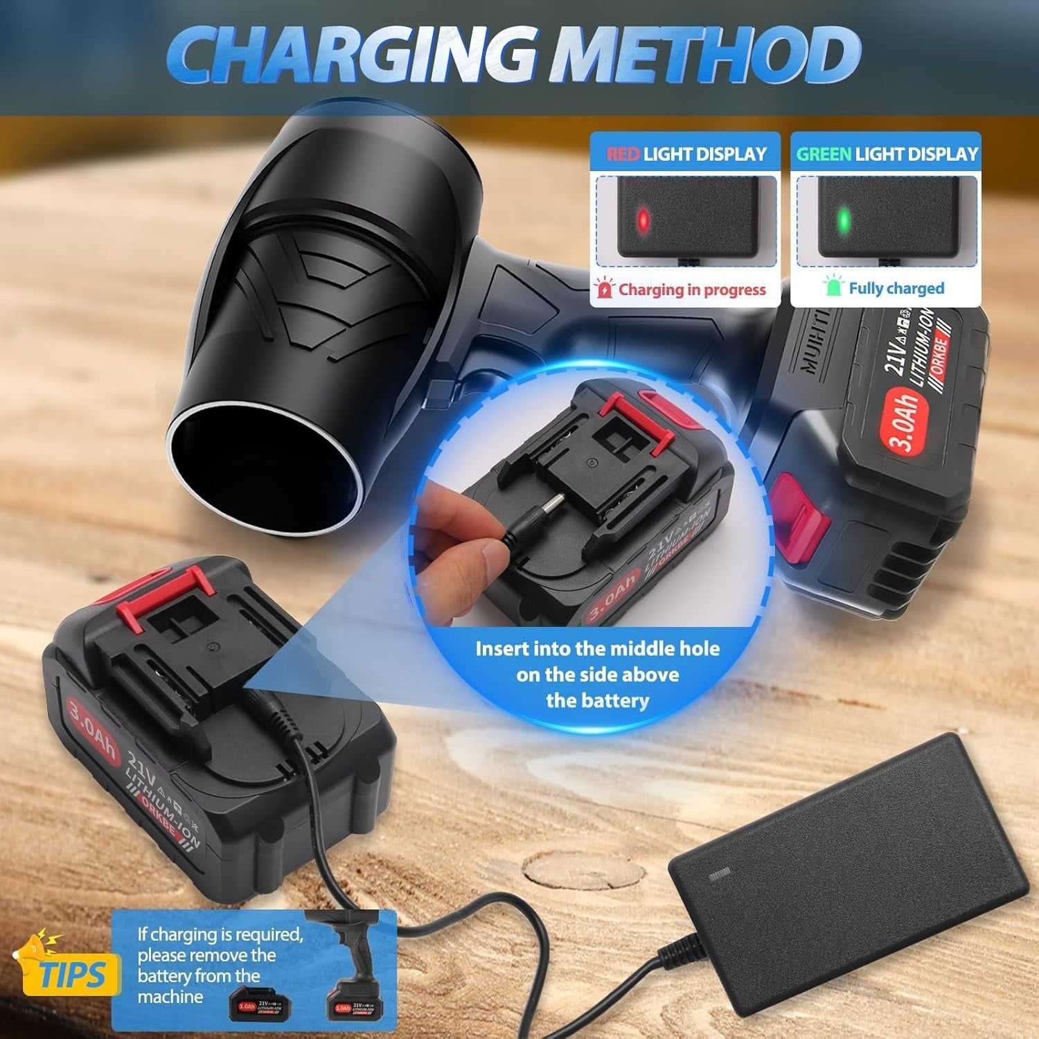 👉 Meet the 21V Cordless Turbo Jet Blower — engineered to dry your car, clean your patio, or clear your lawn with pure air power. This compact beast cranks out 32,000 RPM and includes 2 Li-ion batteries, a fast charger, and an ergonomic handle that makes cleanup feel like a breeze.